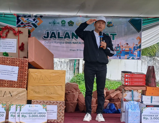 Bengkulu (Humas) — Kepala Kantor Wilayah Kementerian Agama Provinsi Bengkulu, Dr. H. Saefudin, S.Ag., M.Si., menghadiri kegiatan Dies Natalis ke-10 Sekolah Tinggi Ilmu Ekonomi Syariah Nahdlatul Ulama (STIESNU) Bengkulu yang dilaksanakan di Lapangan STIESNU, Minggu (8/2).