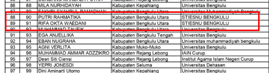 BENGKULU – Sekolah Tinggi Ilmu Ekonomi Syariah NU (STIESNU) Bengkulu kembali mencatat prestasi di bidang kesejahteraan mahasiswa. Tiga mahasiswa terbaiknya, yaitu RIFQI OKTA WAEDANI, FITRI YULIANA, dan MERI ASTUTI, berhasil lolos seleksi Beasiswa Gerakan Infaq Mahasiswa Islam (GERIMIS) yang dikelola oleh Badan Amil Zakat Nasional (BAZNAS) Provinsi Bengkulu.